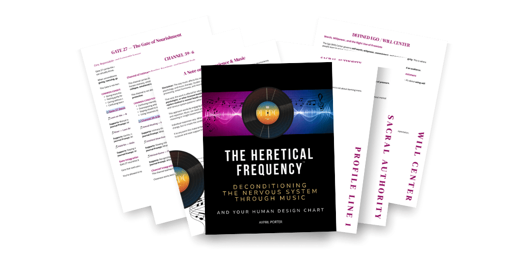 The Heretical Heart Frequency Report is where I put that work into something you can use. It pairs your specific Human Design chart with music, journal prompts, and deconditioning support designed to help you feel your way back to yourself, not just think your way there. Song by song. Layer by layer. Back to the version of you that existed before all the conditioning piled on.