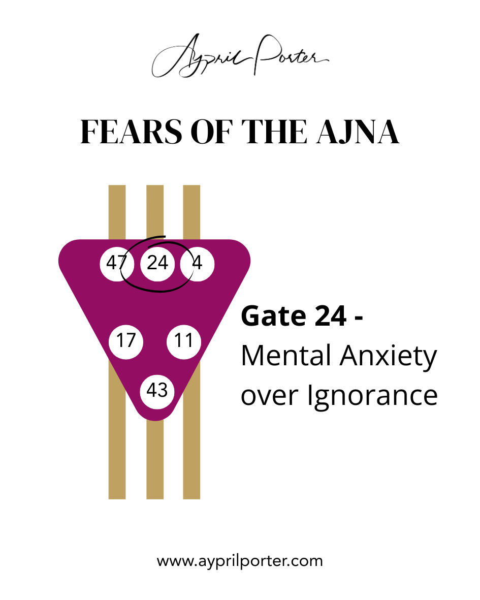 Gate 24 lives in the Ajna Center, and it's one of the most introspective gates in the chart. It processes new ideas by pulling them inward, working them over mentally until they feel ready. But when fear is present, this healthy mental mulling becomes mental looping, a never-ending cycle of rethinking, overthinking, doubting, rationalizing, and returning to the same place again.