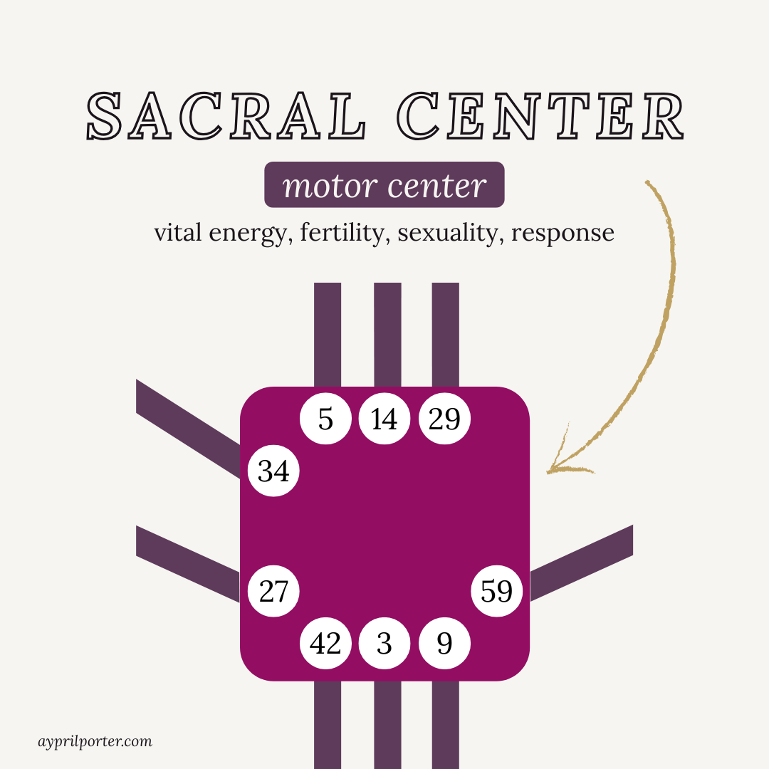 The Sacral is a powerful, renewable motor. It is the energy to build, sustain, respond, and grow. It is life force itself in its most physical form. If you have this center defined, you have consistent access to that energy — but it works best, and only sustainably, when you are directing it toward things that genuinely light you up.